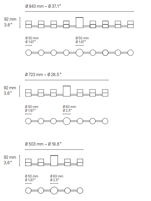 Matmenys IP Backstage Linear L8: Ø50 x 943 x 92 mm